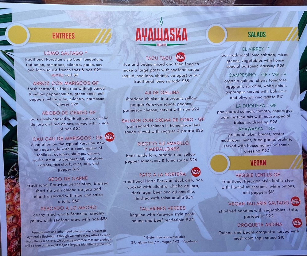 "Ayawaska Hilltop is a trendy and upscale Latinx-owned restaurant located in Novato, CA. Known for its romantic terrace with stunning views, vibrant cocktails, and a diverse menu, this gem offers a perfect setting for special occasions or casual dining. The menu features delicious dishes like ahi tuna Nikkei, empanadas, lomo saltado, ceviche, and Grilled Octopus on polenta. With options for vegan diets, outdoor seating, full bar service, and complimentary valet parking, Ayawaska Hilltop makes dining a memorable experience. Customers rave about the friendly service, lovely views, and Instagram-worthy ambiance. Whether for a date night, bachelorette party, or birthday celebration, Ayawaska Hilltop promises a delightful culinary journey."